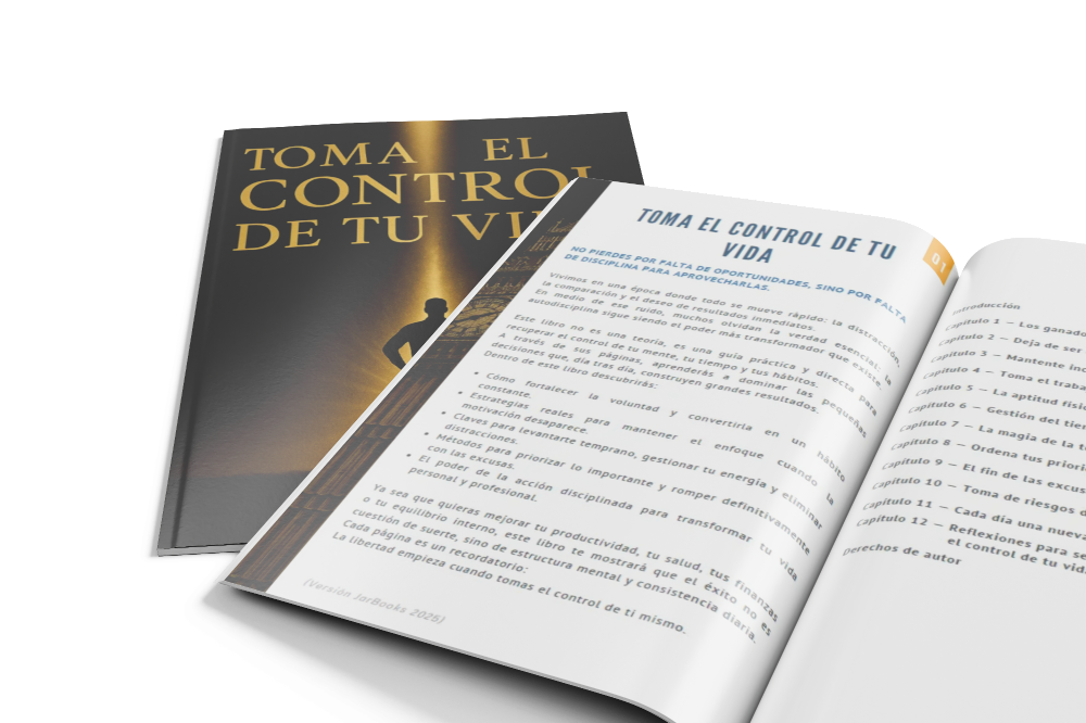 Toma el Control de tu Vida te enseña cómo fortalecer tu autodisciplina, mantener el enfoque en tus metas y construir la mentalidad que distinga a quienes logran lo que se proponen.